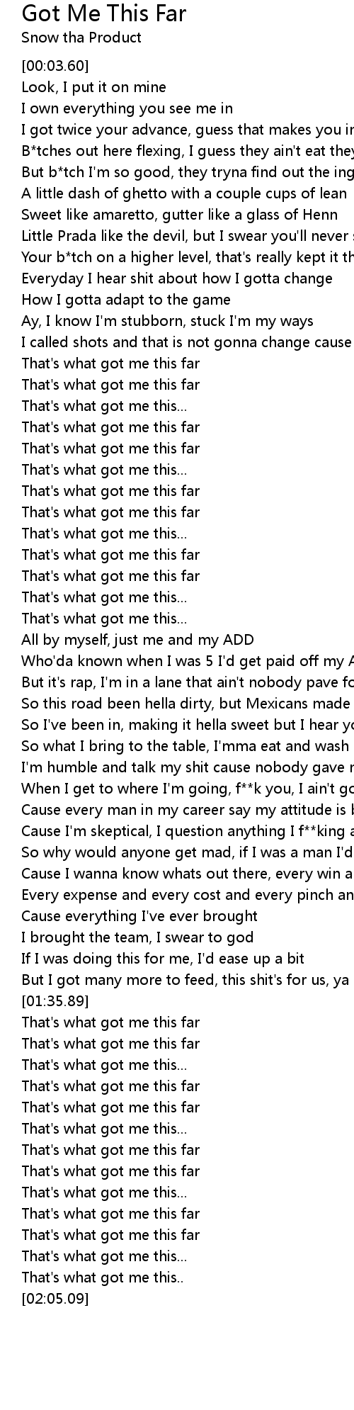 That's what got me this far |