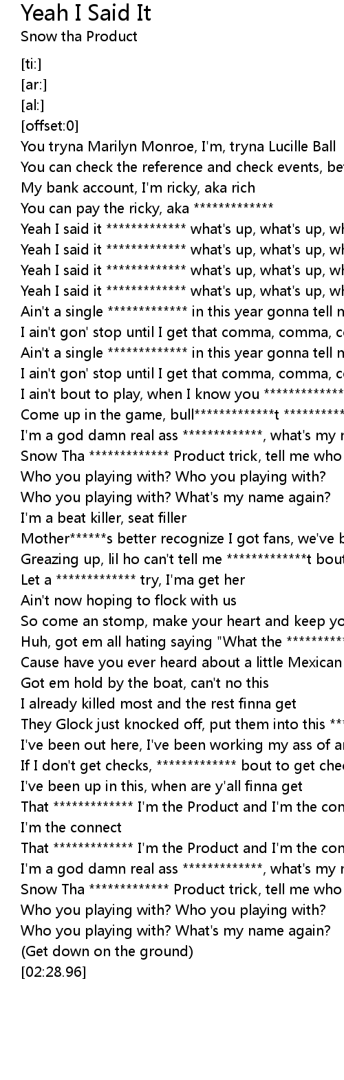 Snow Tha ************* Product trick, tell me who you playing with? |