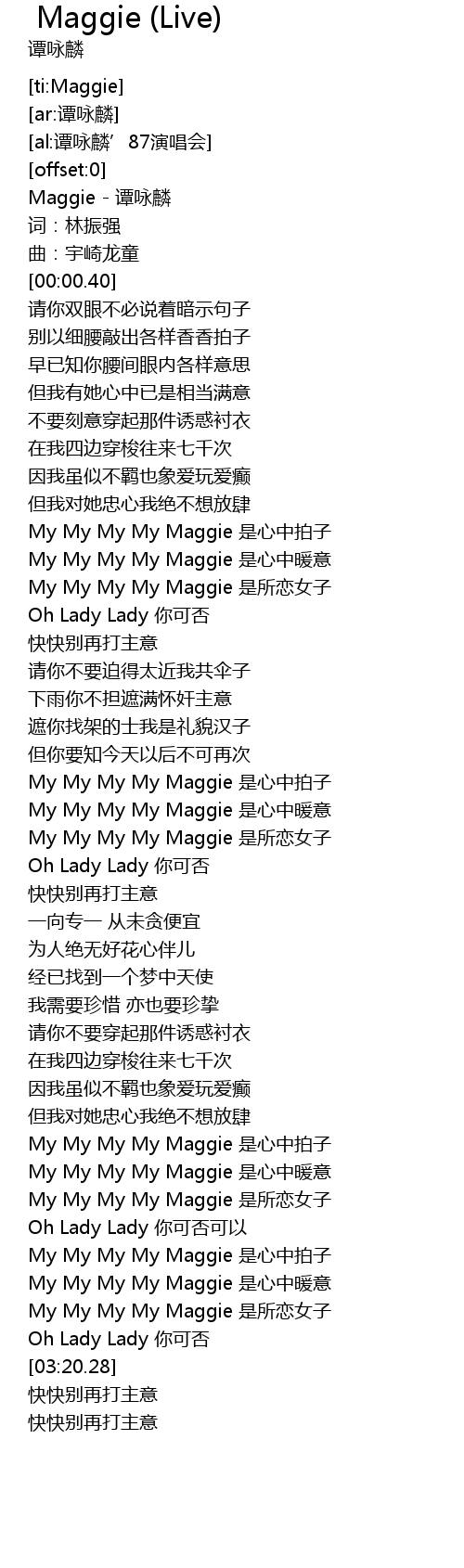 | [01:03.96] | My My My My Maggie 是所恋女子 |