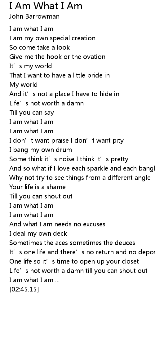 | [01:43.66] | I am what I am |