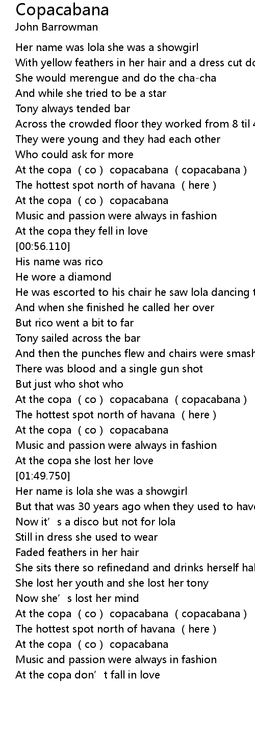 | [02:43.000] | At the copa co copacabana copacabana |