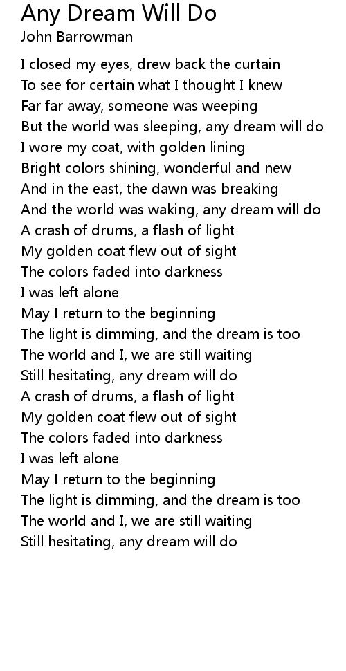 But the world was sleeping, any dream will do |