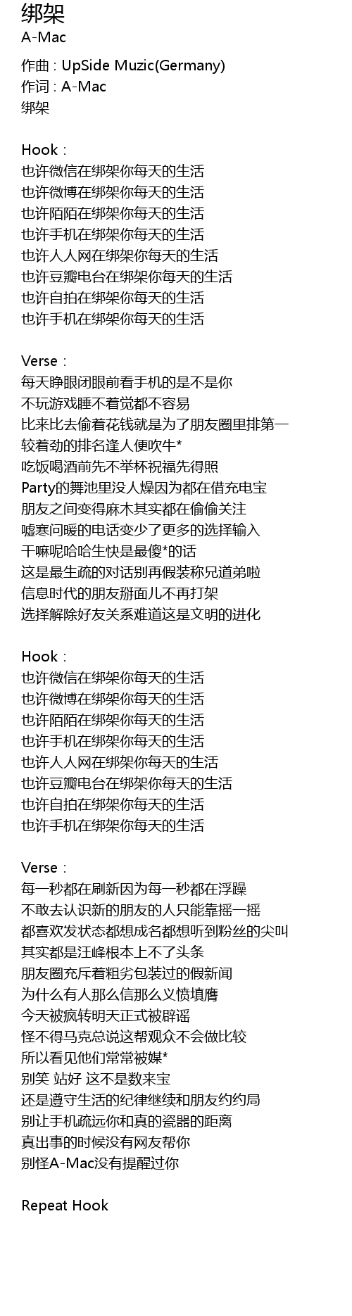 | 作词 : A-Mac | |