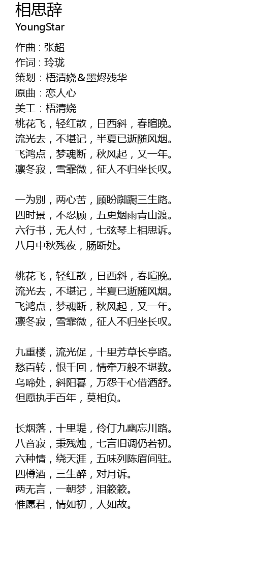 | yī wèi bié, liǎng xīn kǔ, gù pàn chí chú sān shēng lù. | |
