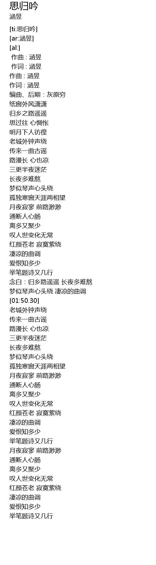 | [01:36.61] | niàn bái: guī xiāng lù yáo yáo cháng yè duō nàn áo |