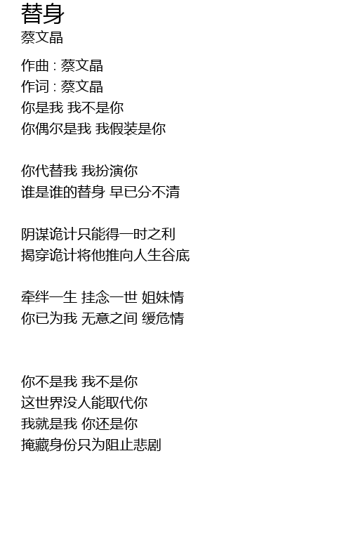 | nǐ dài tì wǒ wǒ bàn yǎn nǐ | |