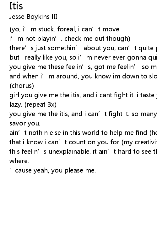 | girl you give me the itis, and i cant fight it. i taste you flavors & i get lazy. (repeat 3x) | |