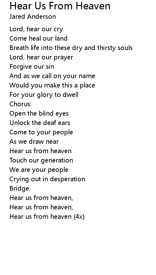 | Hear us from heaven (4x) |