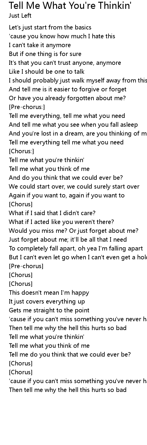 Tell me what you're thinkin' |