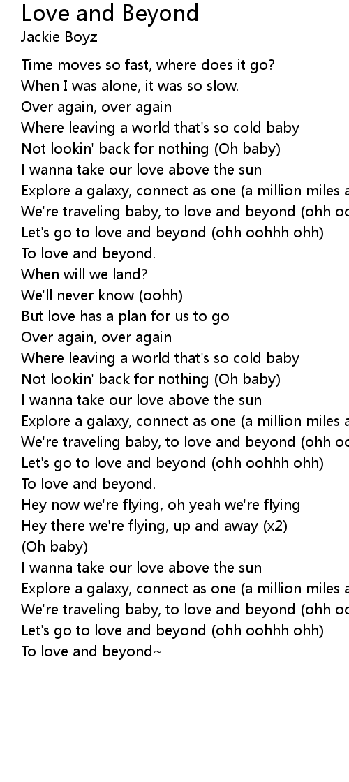 We're traveling baby, to love and beyond (ohh oohhh ohh) |