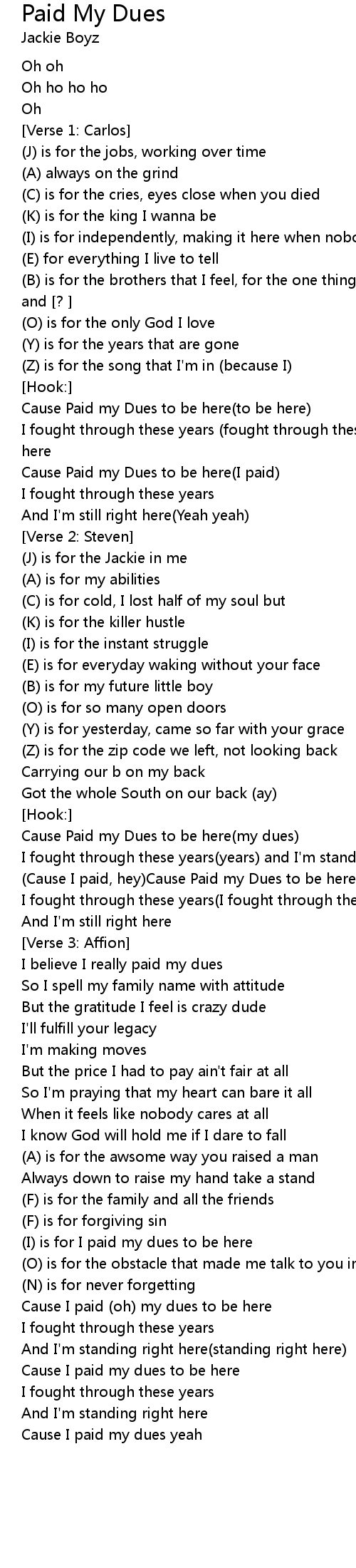 (Cause I paid, hey)Cause Paid my Dues to be here |