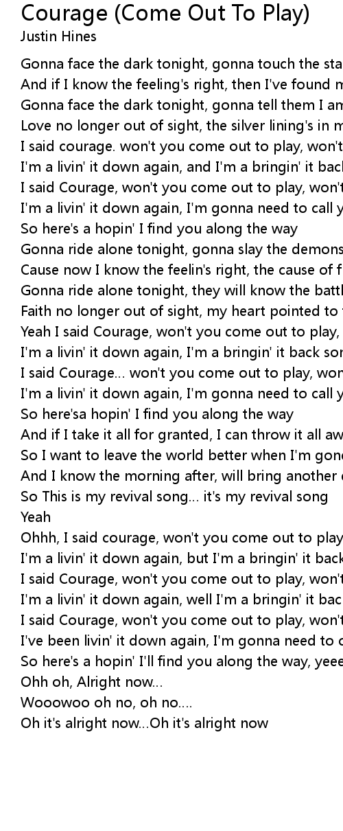 | Ohhh, I said courage, won' t you come out to play, won' t you come out to play | |