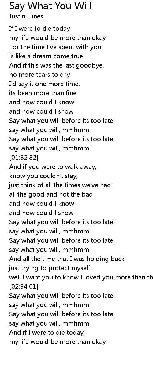 Say what you will before its too late, |