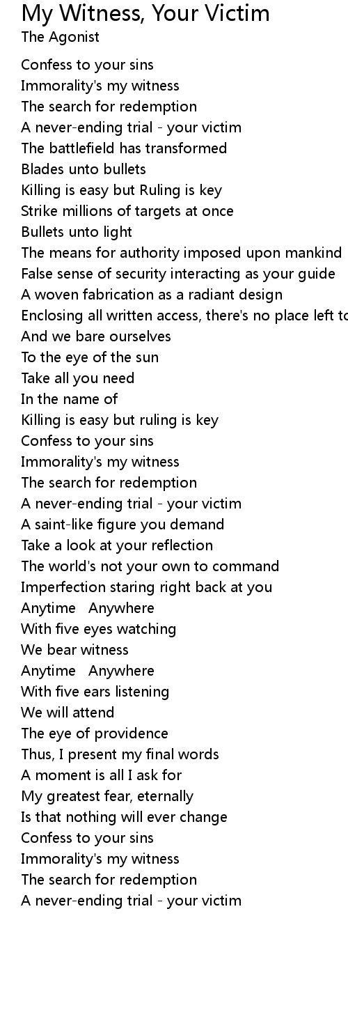Immorality's my witness |
