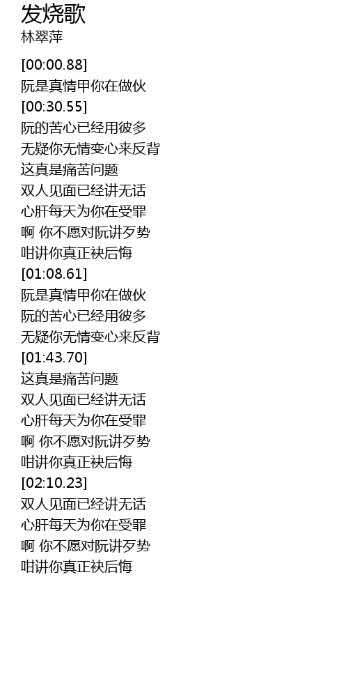 | [00:56.90] | 啊 你不愿对阮讲歹势 |
