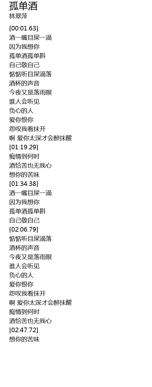 | [01:49.34] | 酒一嘴目屎一滴 |