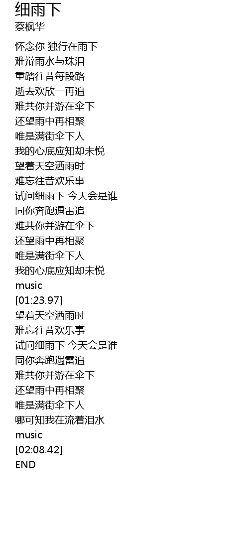| [01:55.56] | 还望雨中再相聚 |