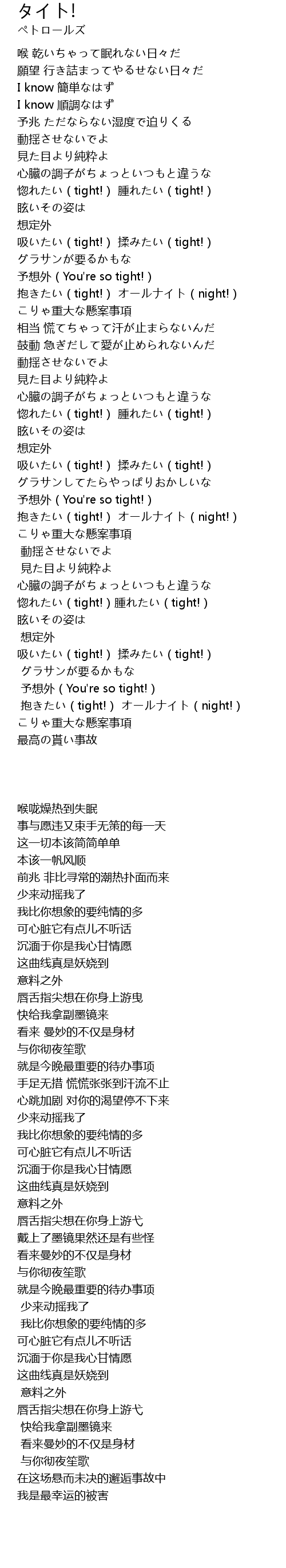 | [00:49.770] | 惚れたい(tight!) 腫れたい(tight!) |