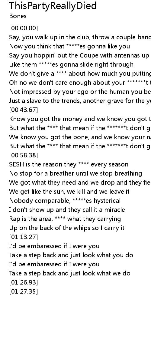 | [00:51.46] | We know you got the bone, and we know your name known |