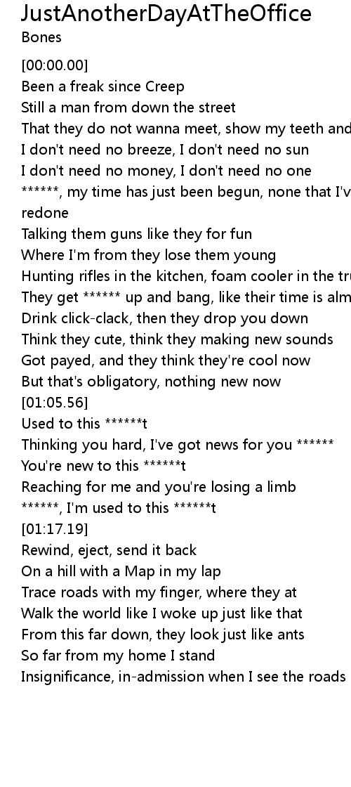| [00:51.25] | They get ****** up and bang, like their time is almost done |