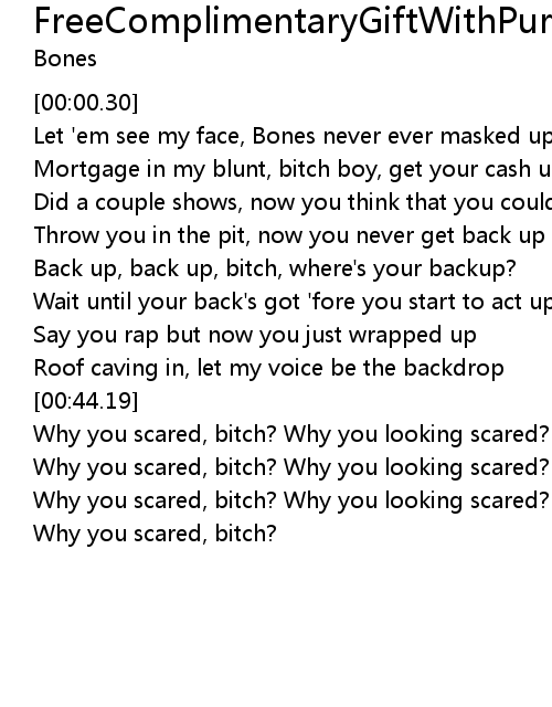 | [00:44.56] | Why you scared, bitch? Why you looking scared? |