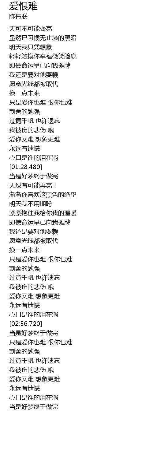 | [02:30.320] | 只是爱你也难 恨你也难 |