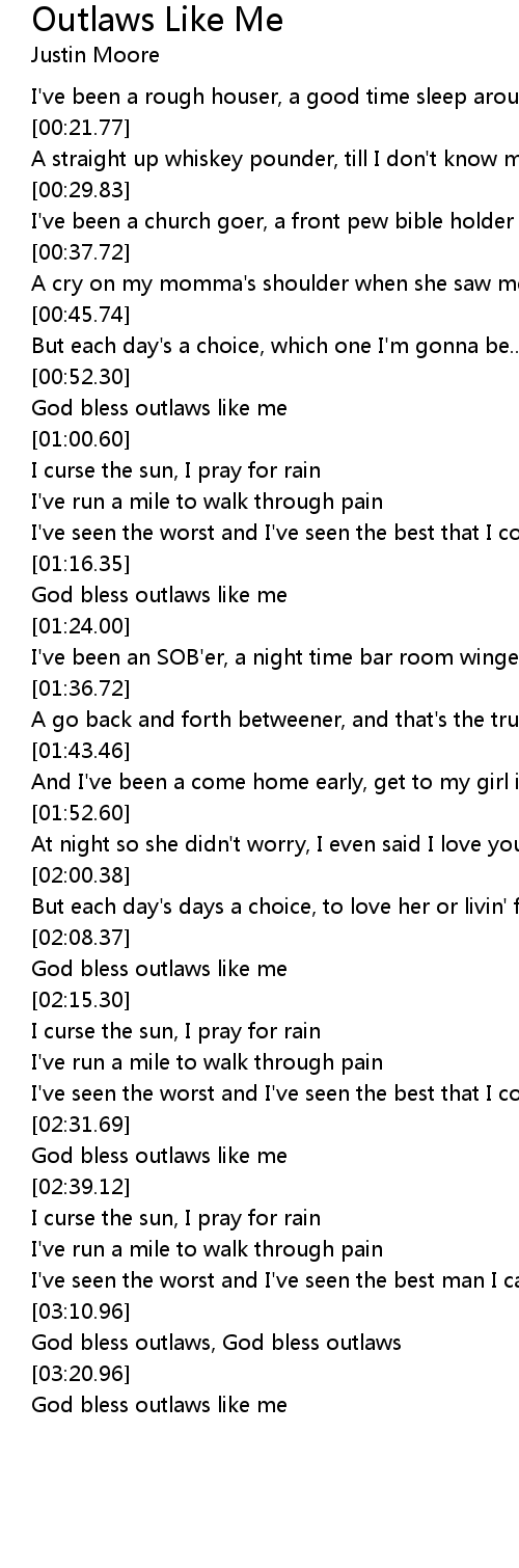 | [00:56.48] | God bless outlaws like me |