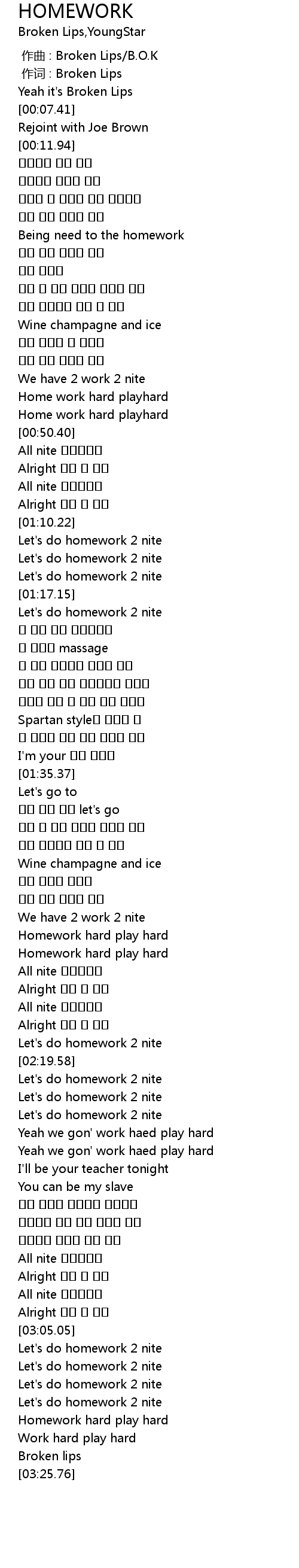 | [02:20.10] | Let' s do homework 2 nite |