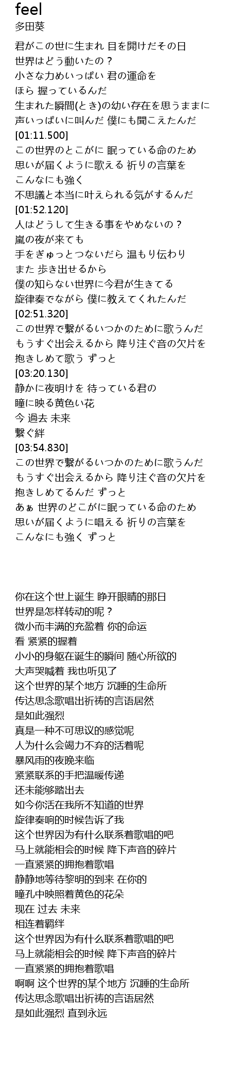 | [00:52.850] | 生まれた瞬間(とき)の幼い存在を思うままに |