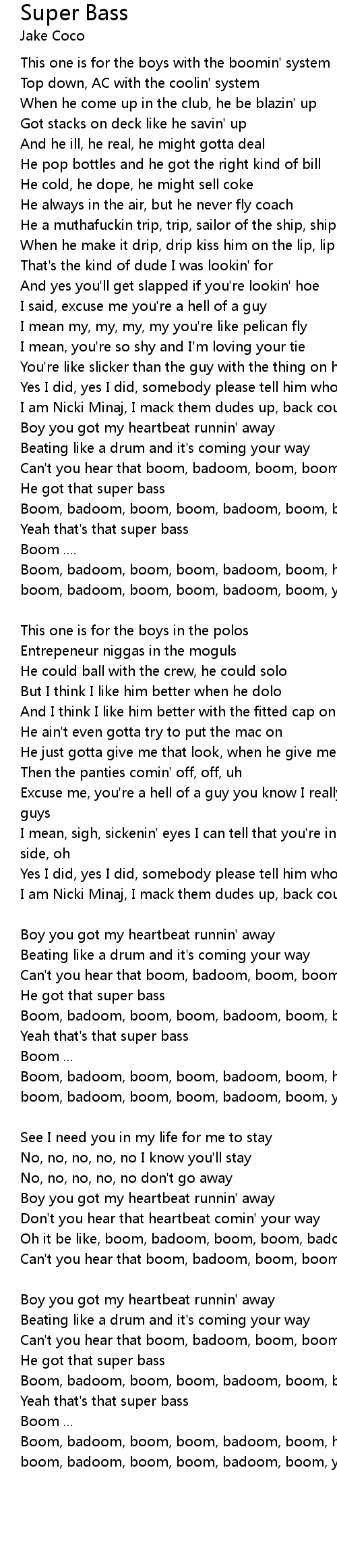 boom, badoom, boom, boom, badoom, boom, yeah that's that super bass |