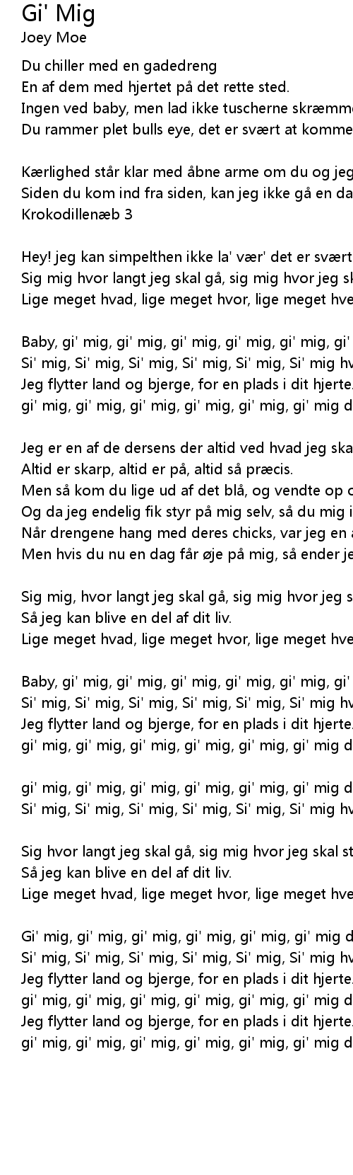| gi' mig, gi' mig, gi' mig, gi' mig, gi' mig, gi' mig din kærlighed | |