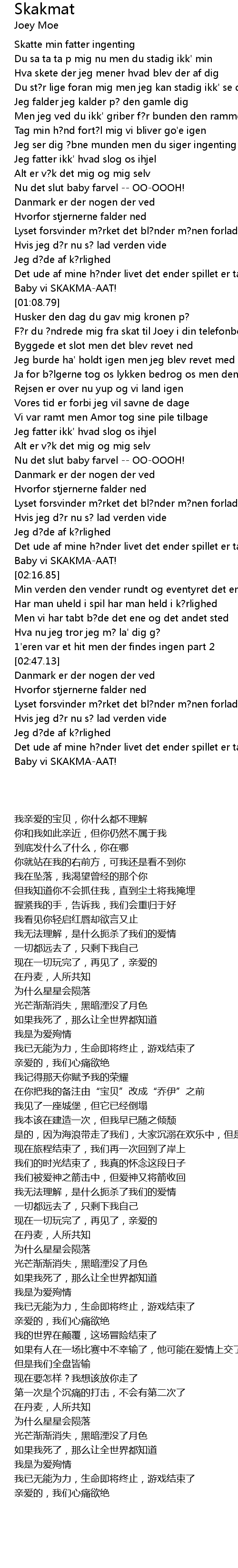 Det ude af mine h?nder livet det ender spillet er tabt -- yeeah |