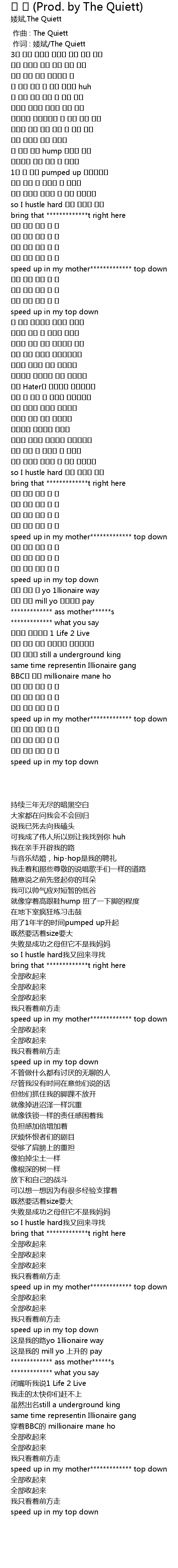 | [00:01.00] | 作词 : 婑斌/The Quiett |