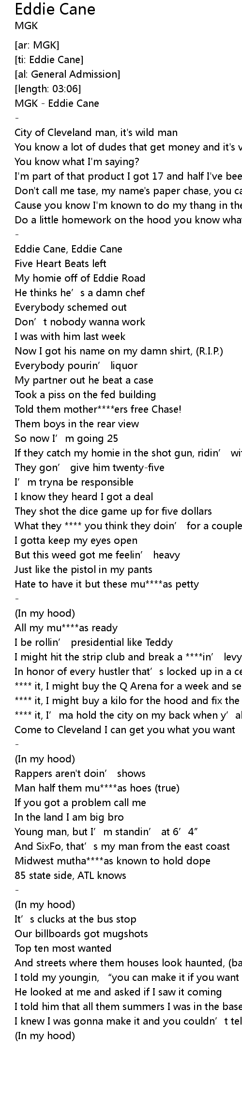 | [00:00.34] | MGK - Eddie Cane |