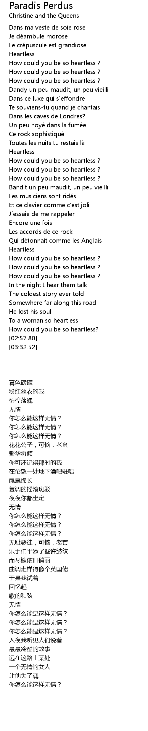 | [02:23.95] | How could you be so heartless ? |