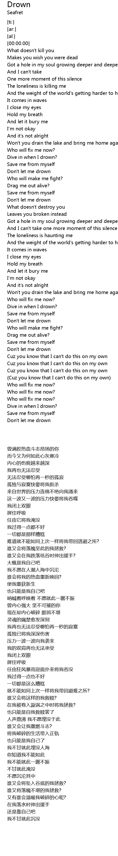 | [02:23.48] | Don't let me drown |