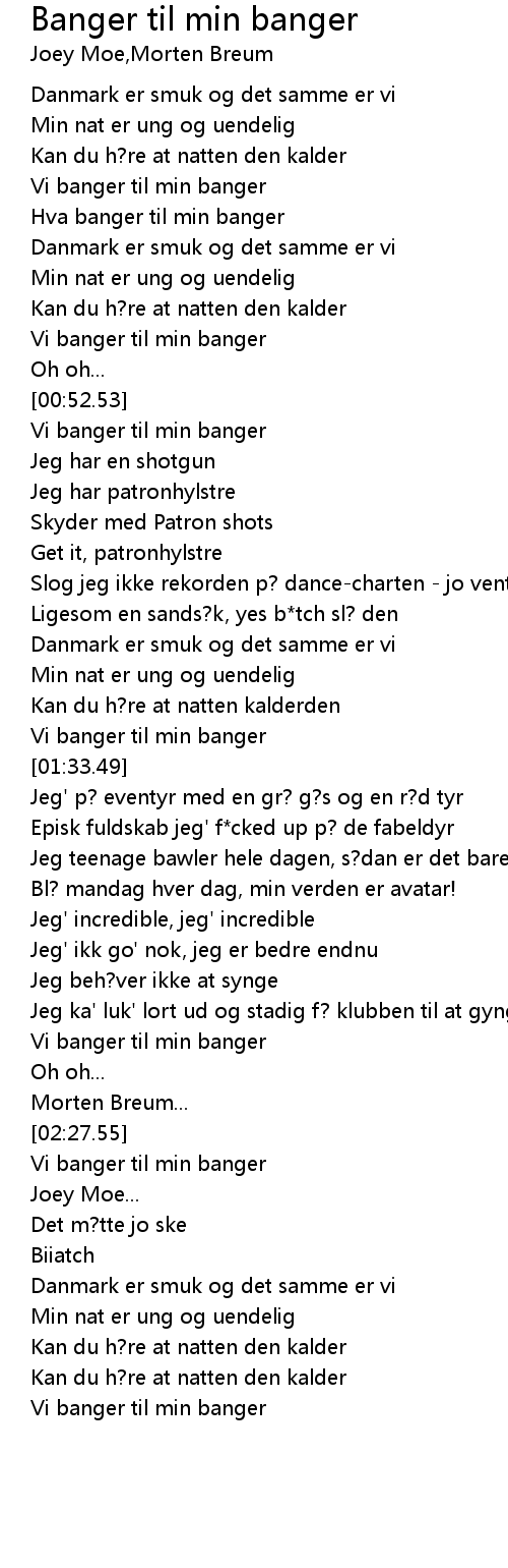 | [01:31.86] | Vi banger til min banger |