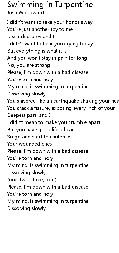 My mind, is swimming in turpentine |
