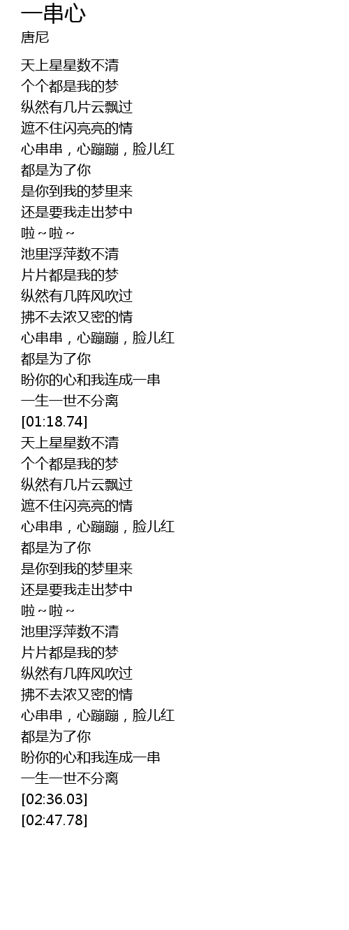 | [02:20.76] | 心串串,心蹦蹦,脸儿红 |