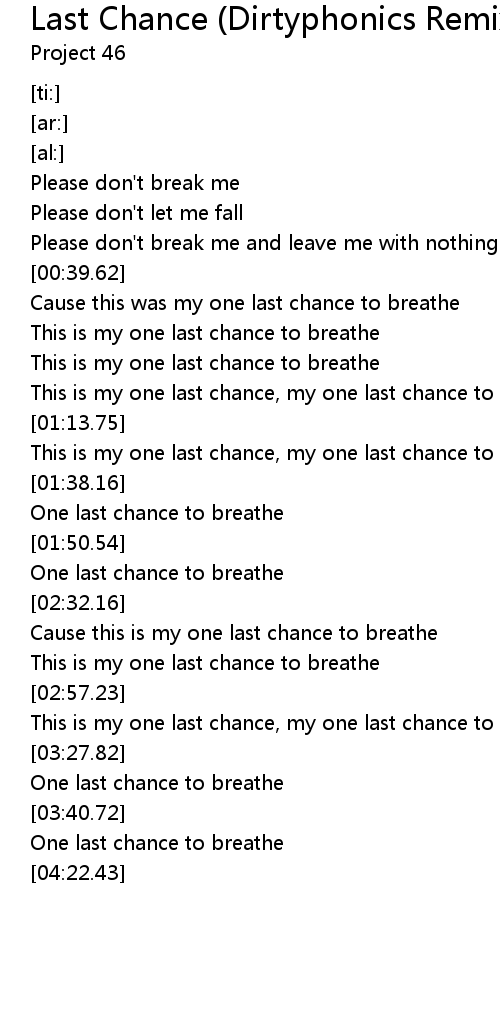 Cause this is my one last chance to breathe |