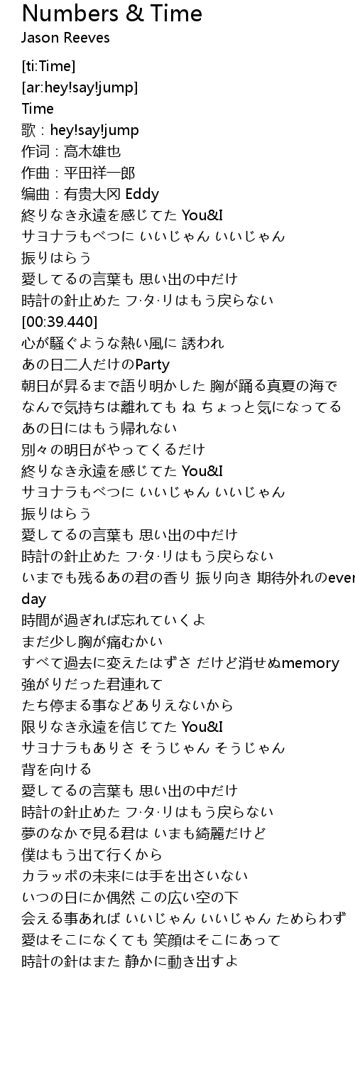 | [02:20.240] | 時計の針止めた フ·タ·リはもう戻らない |