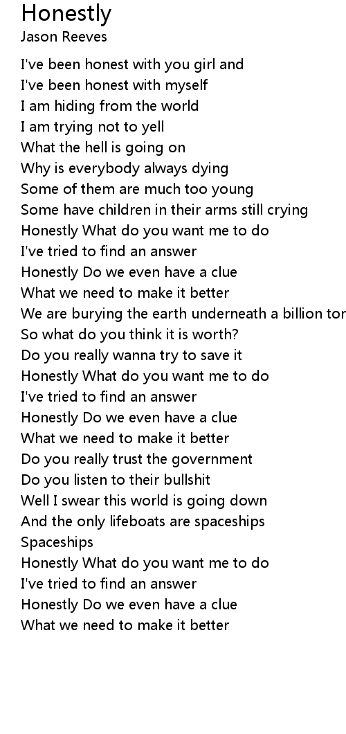 I've been honest with you girl and |
