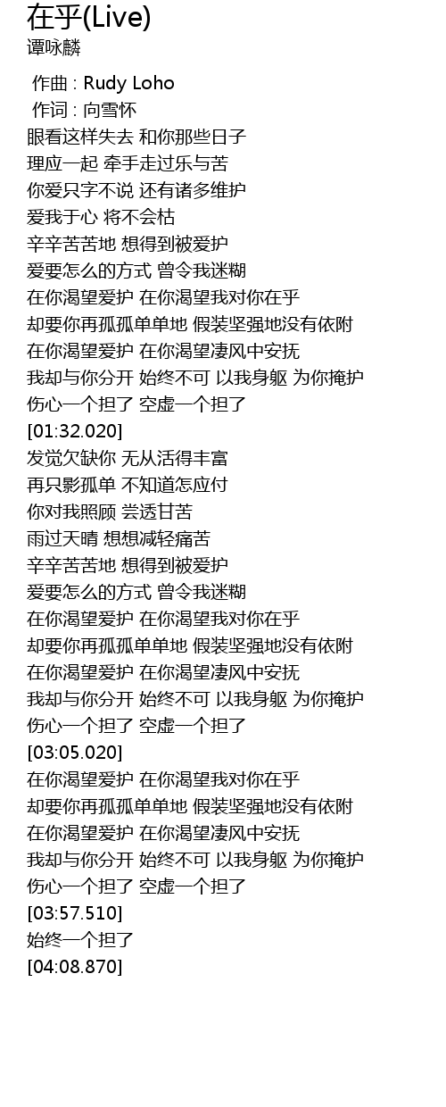 | [00:56.700] | 在你渴望爱护 在你渴望我对你在乎 |