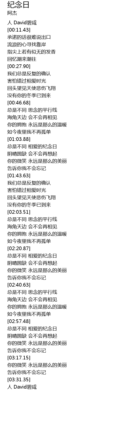 | [02:21.12] | zǒng shì bù tóng xiāng ài de jì niàn rì |