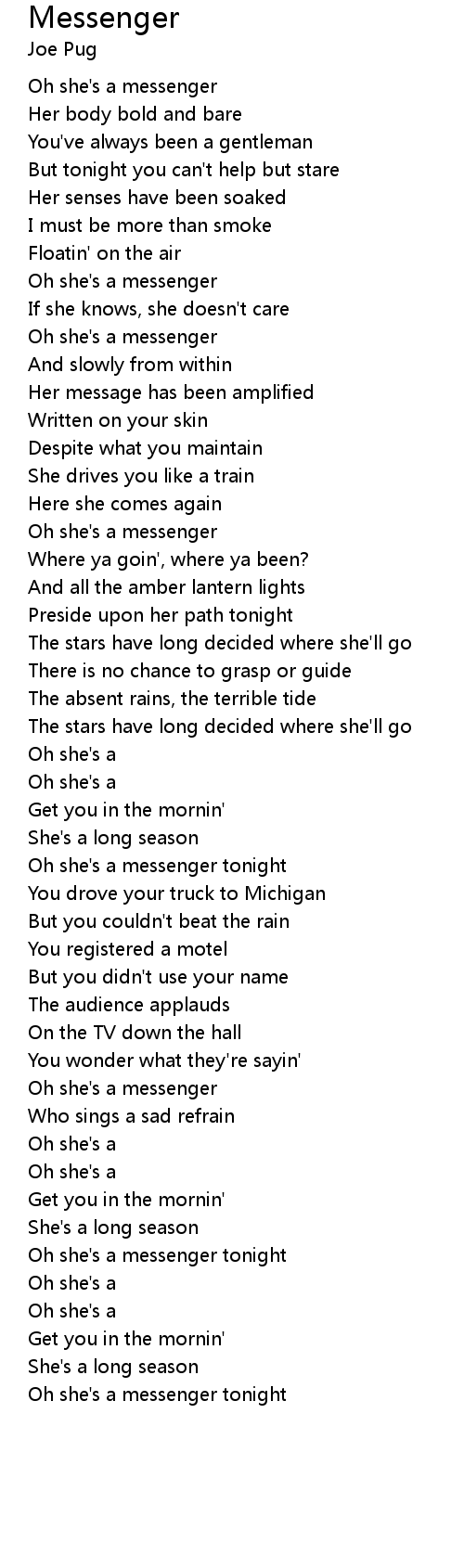 Oh she's a messenger tonight |