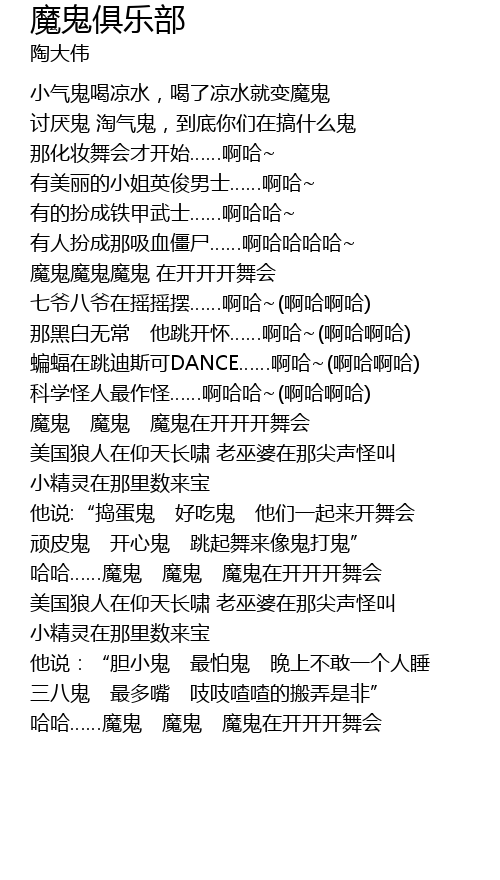 | 哈哈……魔鬼 魔鬼 魔鬼在开开开舞会 |