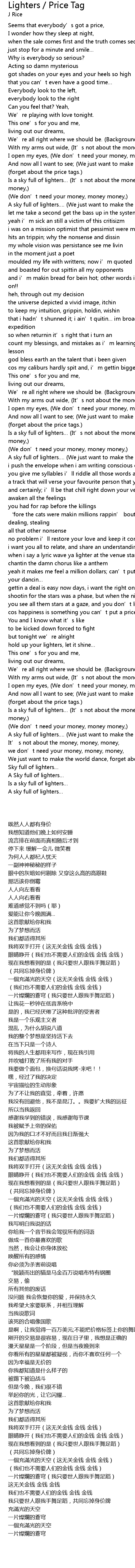 | [03:42.18] | Is a sky full of lighters… (It’s not about the money, money, money,) |