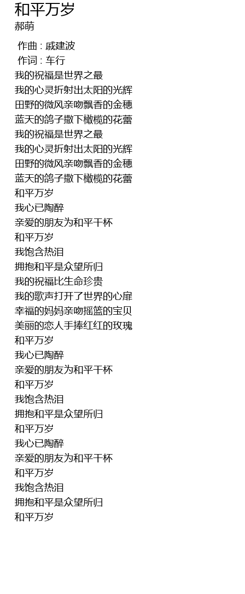| [02:01.76] | 和平万岁 |