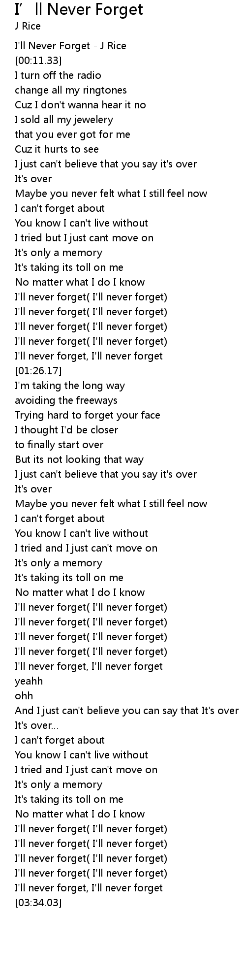 | [03:18.62] | I' ll never forget I' ll never forget |