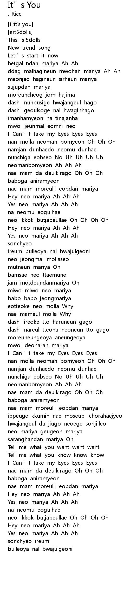 | [02:51.285] | I Can ' t take my Eyes Eyes Eyes |